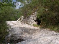 All’altezza di una captazione dell’acqua chiamata "Sbarramento dell’acqua bianca" (il pallino rosa sulla cartina), incrocerete il percorso dell’Opzione "A"; qui lasciate l’auto e proseguite a piedi. Salite per la stretta valle altri 50/100 mt. Le salite per il San Martino iniziano a dx. Una volta vi era un sentiero del CAI di Cassino, ma mi dicono che poco o nulla è rimasto; cominciate a salire (io ci mettevo una oretta per arrivare, ma non faccio testo (i miei 100 e passa "kili" si facevano sentire tutti). Tutto il percorso in salita è all’ombra del bosco, vi accorgerete di essere quasi arrivati quando inizieranno ad apparire i primi ricoveri a ridosso della prima linea.