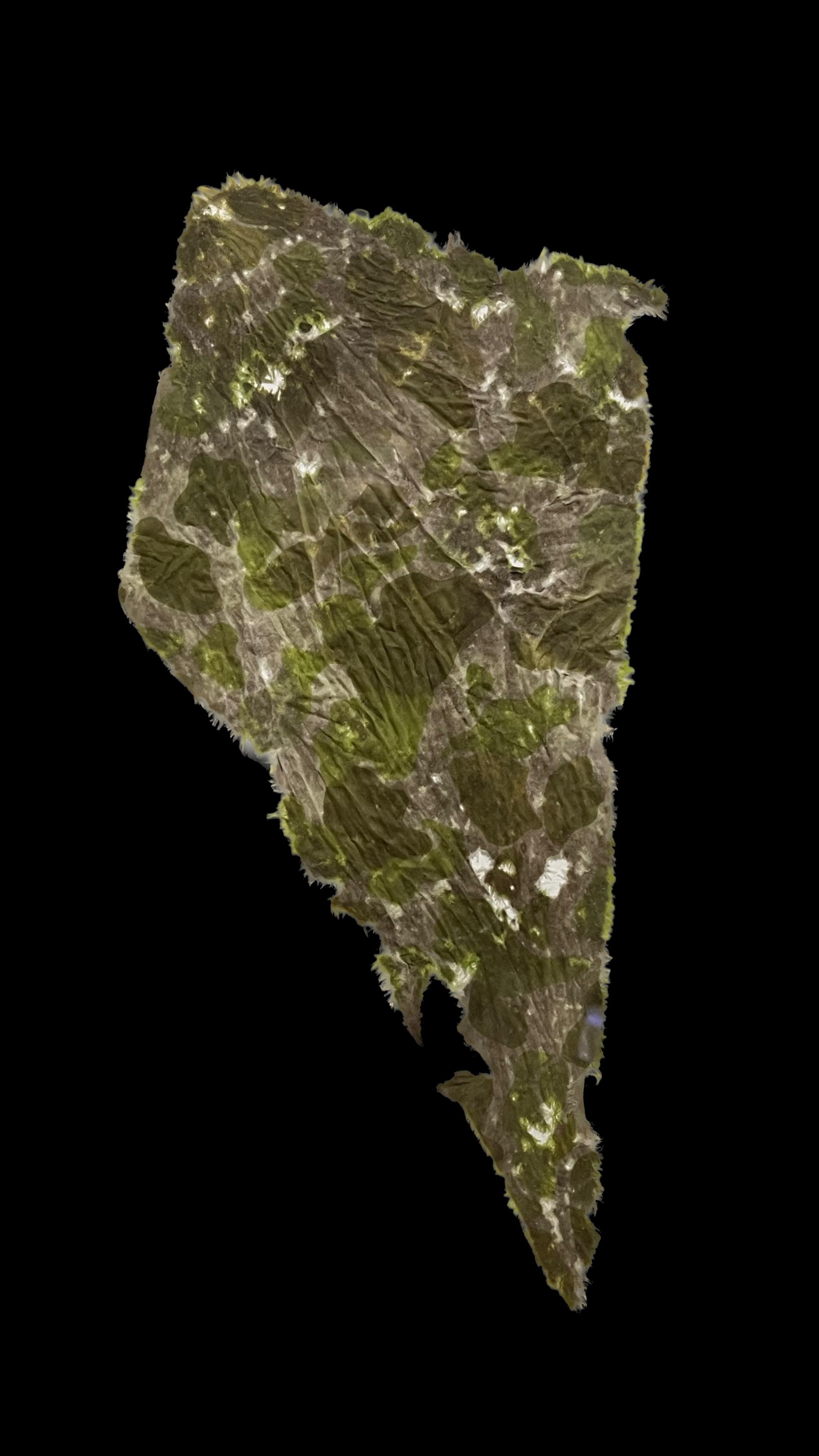 Vidi delle macchie verdi, alcune scure, altre decisamente più chiare. Il tessuto era molto sottile e altrettanto delicato. Capii di avere tra le mani un brandello