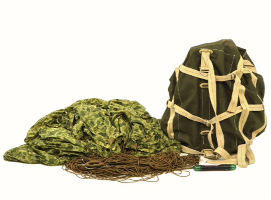 permetteva di identificare immediatamente il tipo di materiale trasportato. Atri paracadute avevano invece uno schema mimetico, per un altro motivo: quel tessuto poteva