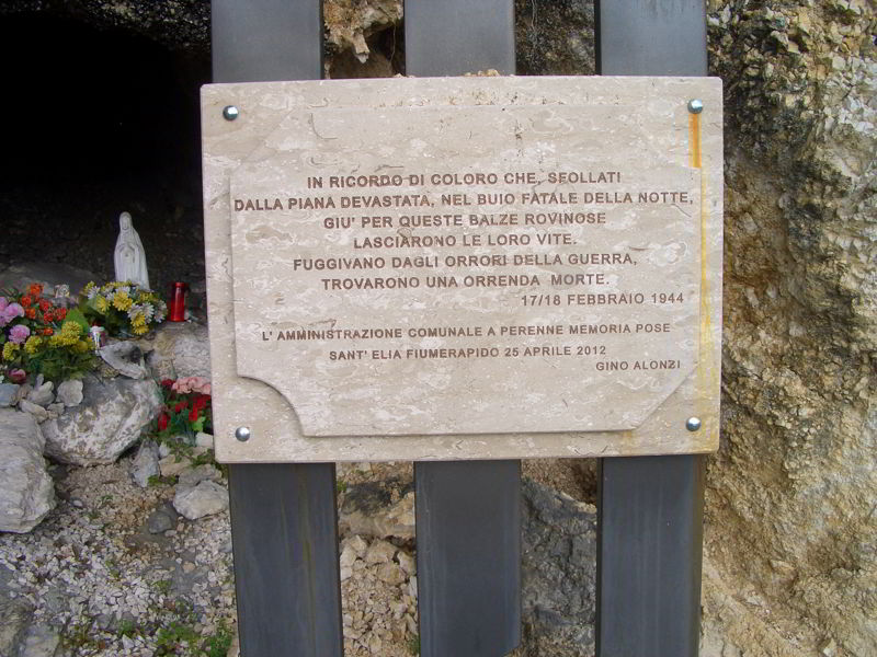 Stele posata nel 2012 l'amministrazione comunale di Sant’Elia Fiumerapido a ricordo di 20 civili morti precipitando nel dirupo con il camion che li trasportava.