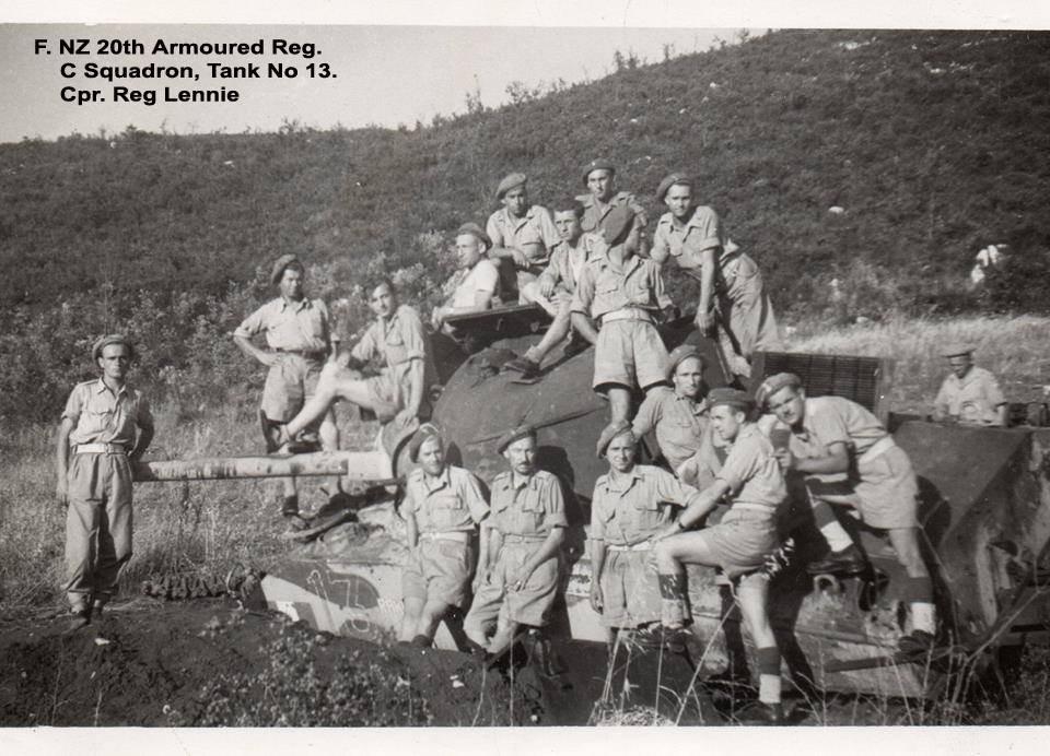 Maggio 1944. Il carro Sherman del C.le Reg. J. Lennie (NZ), danneggiato durante l'azione del 19 marzo 1944, di fronte a Masseria Albaneta.